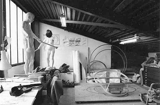 The artist is a traditional sculptor, meaning he undertakes the practical creation of his works; his figure sculptures are modelled in clay from observation of the life model and he explores contemporary issues affecting the human condition. The artist has produced a series of yoke-like wooden and mobile structures whether positioned hanging from the shoulders of his figure sculptures cast in fibreglass resin or in the latter case, within the built environment. In all cases the wooden structures show a degree of craft and artistry created in response to the architectural surrounding or in the case of the figure sculptures, the subject’s cultural, mental, physiological or biological condition.