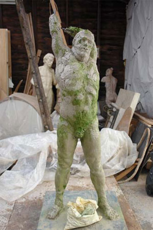 My Two Memory Stores, displays as with many previous works of the artist, the recognisable format of figure sculpture and yoke-like wooden apparatus. Here the wooden yoke-like apparatus will serve to illustrate the two hippocampi, found either side of the brain. These two identical hippocampi, may be responsible for absorbing information and forming memories.