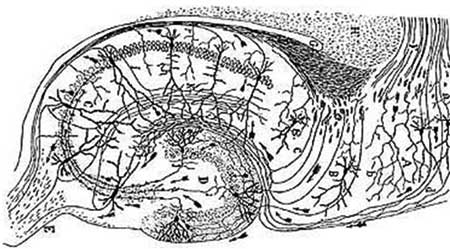 Santiago Ramón y Cajal, Drawing of the hippocampus. More information on Wikipedia.