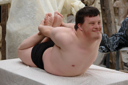 George whilst modelling for the work George V, struck this pose, a stretching position done prior to his gym work. George has been selected for the British skiing team to enter the Special Olympics in Idalo, America, January 2009. The composition reminded the artist of a bobsleigh and rider, hence the title.